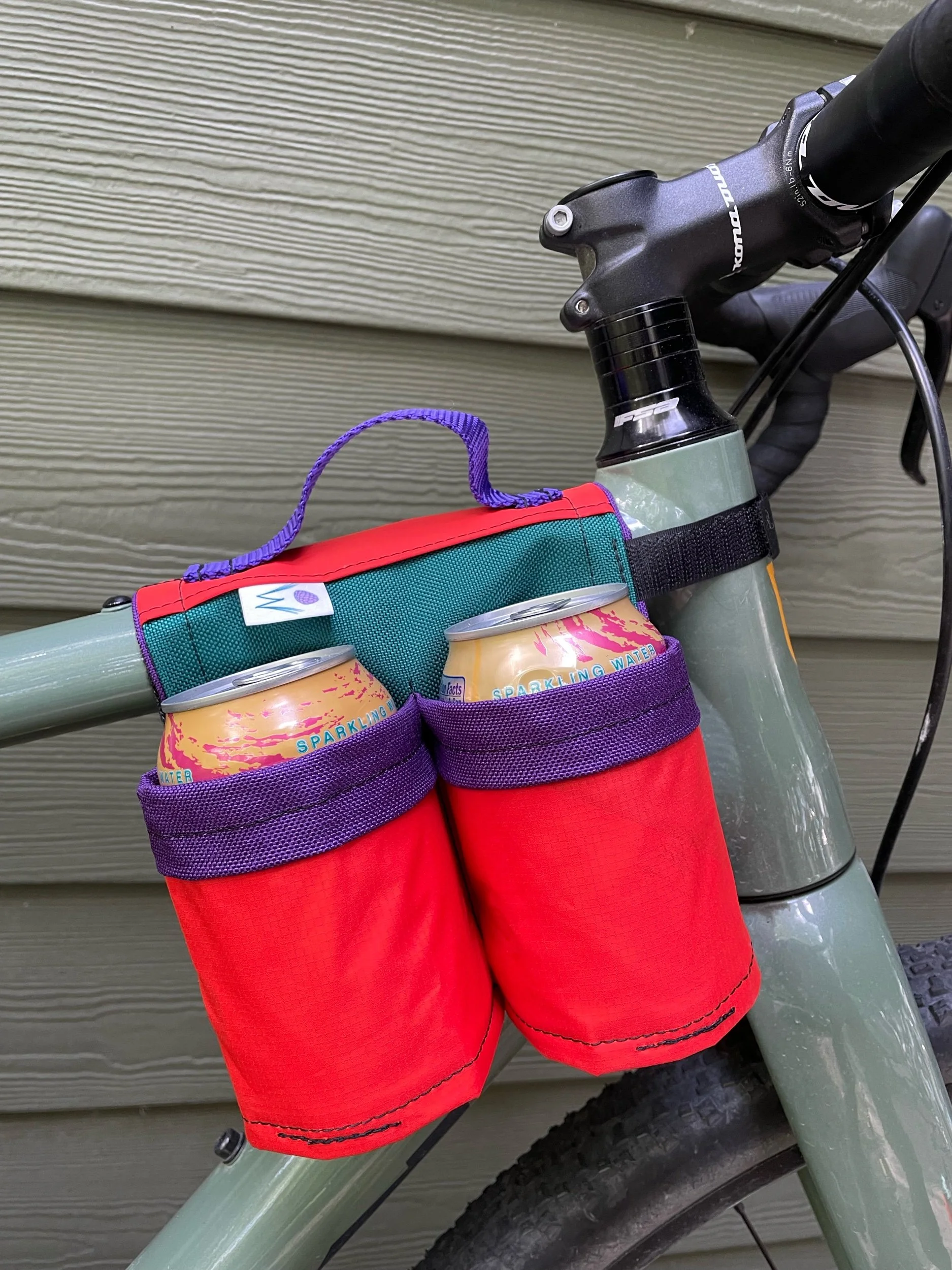 The traditional can holder just got an upgrade - insulation! These bags feature light insulation to help regulate can temps in hot or cold weather. The insulated panel comes from upcycled sleeping pads so each bag has its own unique style and history!